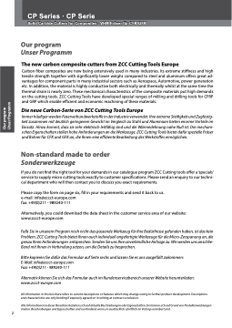 Carbon fiber composites are now being extensively used in many industries. Its extreme stiffness and high tensile strength together with significantly lower weighs compared to steel and aluminum offers great ad- vantages for component parts in many industrial sectors such as Aerospace, Automotive, power generation etc. In addition, the material is highly conductive both electrically and thermally whilst at the same time the thermal strain is nearly zero. These mechanical characteristics of the composite materials put high demands on the cutting tools. ZCC Cutting Tools have developed special ranges of milling and drilling tools for CFRP and GRP which enable efficient and economic machining of these materials.
