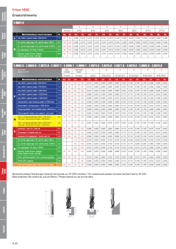 Bei beschichteten Werkzeugen bitte die Vorschübe um 10-20% erhöhen / For coated tools please increase the feed rate by 10-20% Bitte beachten Sie unsere ap und ae-Werte / Please attend our ap and ae-data